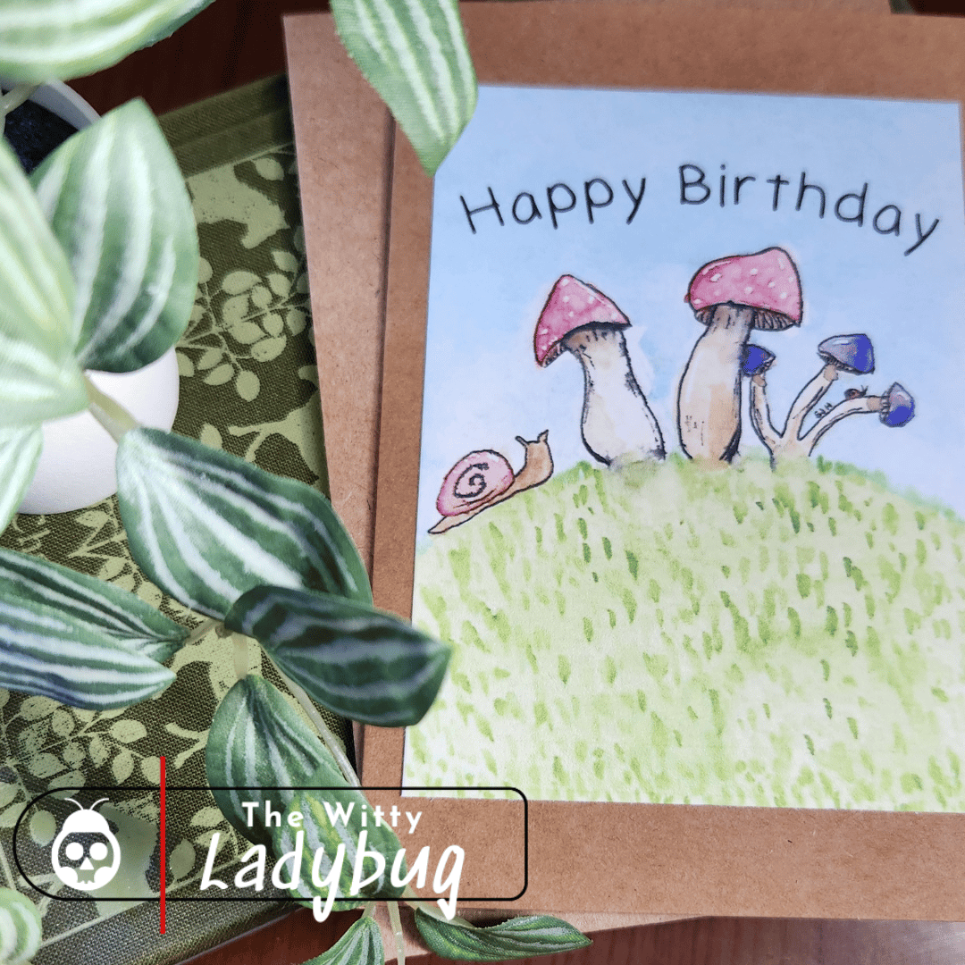 This 4×6″ greeting card is blank inside so you can add your own heartfelt—or fungi message. Includes envelope, ready to send. Perfect for birthday lovers, pun fans, mushroom lovers, or anyone who appreciates whimsy, quirky humor, and unique, handmade cards.