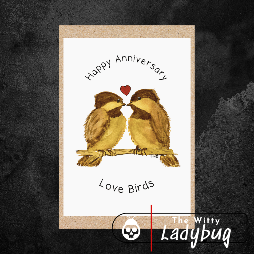 Give the gift of handmade to a loved ones celebrating an anniversary. Inspired by my parents upcoming wedding anniversary, I painted this image of the love birds. I usually have a hard time finding anniversary cards that aren't just tied directly to weddings. Whether the couple in mind is married or not, this card is perfect! The card is blank inside allowing you to add your perfect heartfelt inscription.
