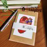 Handmade by Sarah of The Witty Ladybug, each card is printed locally in Alamosa, CO and assembled by hand. The 4×6 card comes blank inside so you can write anything from “Glad you survived that breakup — let’s burn his hoodie” to “Congrats on your new and improved bionic heart.”