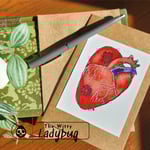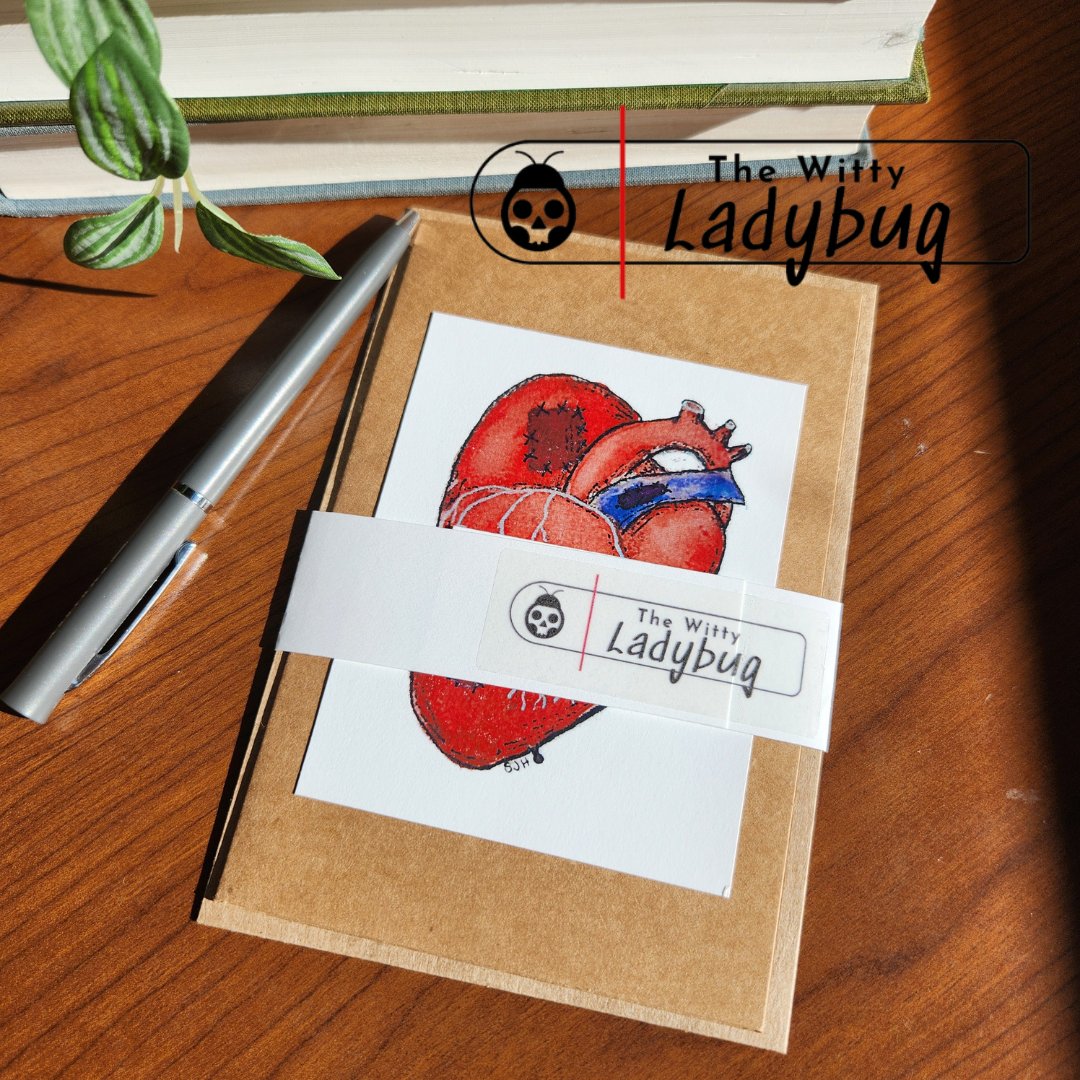 Not all hearts come unscathed...some get patched up and keep on beating stronger (and sassier). This Heart Greeting Card features a hand-painted heart with little patches, perfect for telling someone you love them, cheering them up after heart surgery, or sending solidarity after a breakup.